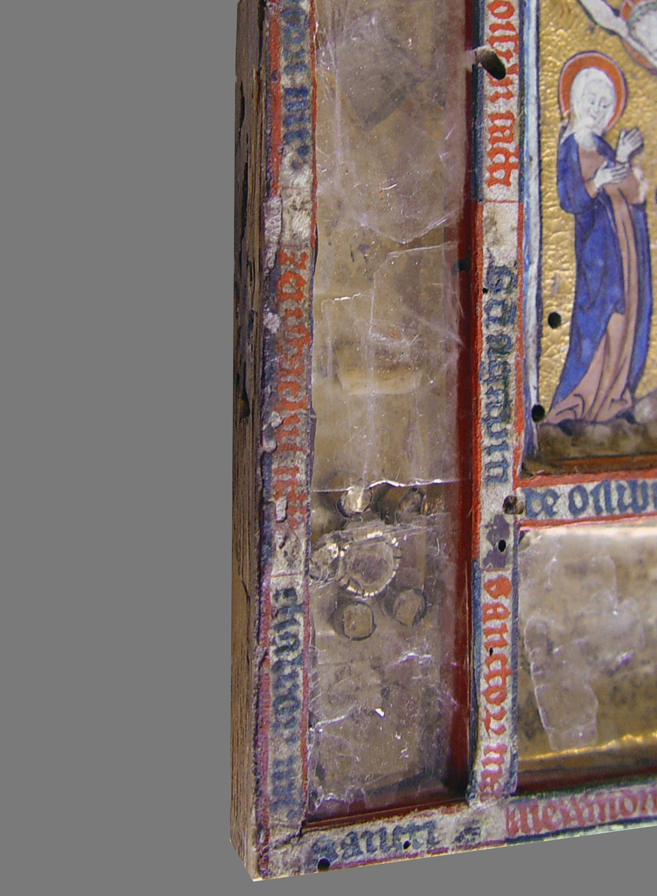Before the exhibition some conservation treatment was necessary to allow display of the diptych: