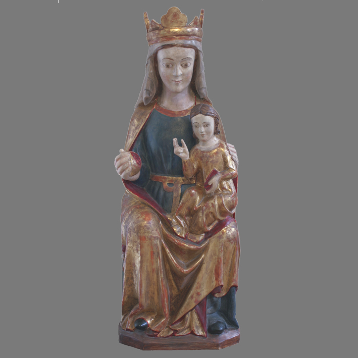Bildhauerische Kopie der Madonnenskulptur mit Ergänzung von Krone und fehlenden Teilen
